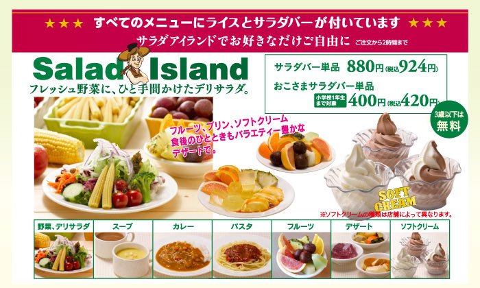 ※サラダバーは、サイドメニュー・アルコール・ドリンクバーにはついておりません。