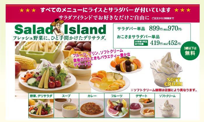 ※サラダバーは、サイドメニュー・アルコール・ドリンクバーにはついておりません。